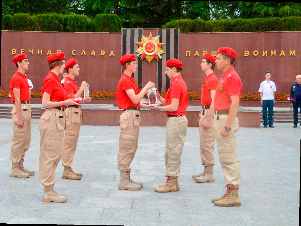 Сегодня на Завокзальном мемориальном комплексе прошла церемония передачи Огня Памяти. Юнармейцы из Сочи передали лампаду с пламенем своим сверстникам из Туапсинского района. Во время мероприятия участники почтили память погибших минутой молчания и возложили цветы к Вечному огню.